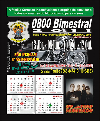 No dia 13 de abril a banda se apresenta no crurrasco 0800 da Carrasco Indomável MC em Tribobó - SG, no Quiosque Madeira Velha (ao lado da DICASA) a partir das 20h.