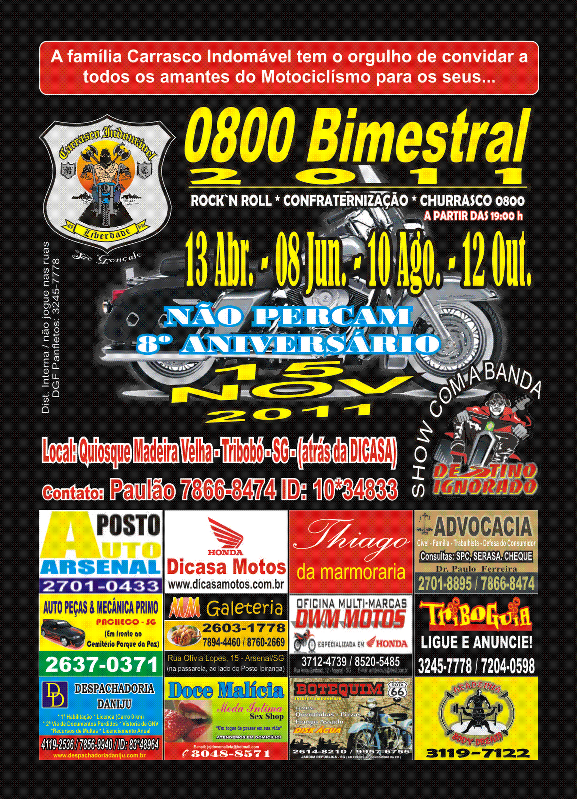 ao lado da DICASA FIAT em Tribobó, São Gonçalo / RJ a partir das 19:00 h dia 08 de junho de 2011.
